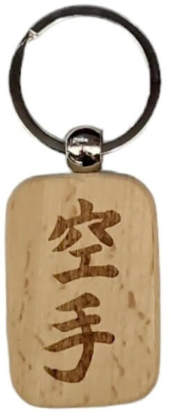 A kulcstartó fából készült, rajta lézerrel vésett Karate felirat látható, japán szimbólumokkal. Fém karikával. A fa kulcstartó mérete kb. 4,5*3 cm vastagsága kb 0.7 cm Kulcskarika átmérője 3 cm
