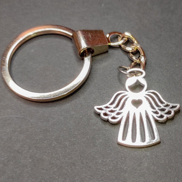 Angyalka kulcstartó. Paraméterek: Medál mérete: kb 2,7 cm, anyaga fémötvözet. Kulcstartó karika típus eltérhet a képen láthatótól, készlet szerint küldjük. Ékszeralapok anyaga: rozsdamentes acél.