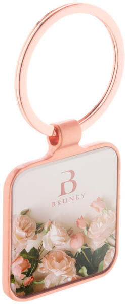 Négyzet alakú fém kulcstartó arany kivitelben, fegyverfém lemezzel. Kraft papír dobozban.