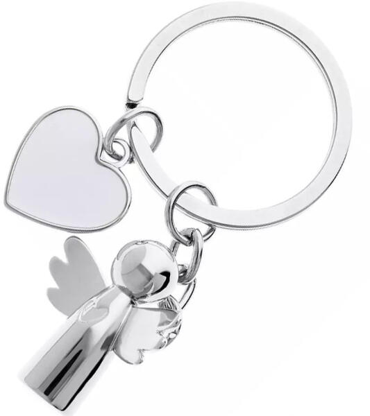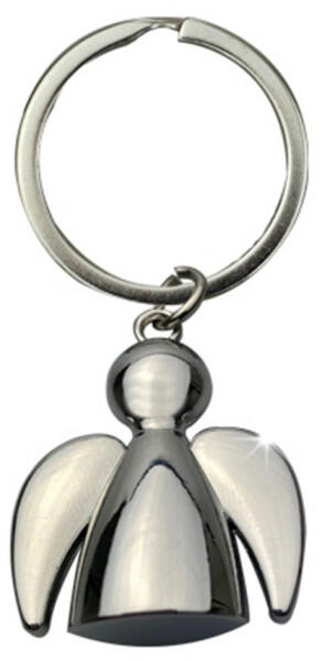 Termék jellemzői: Angyal alakú, fényes ezüstszínű fém kulcstartó, szív kiegészítővel. A szív fényes fém oldala gravírozha körvonalasan. Az angyal 3 cm magas. Fekete kartndobozba csomagolva szállítjuk.