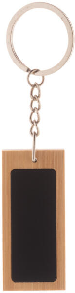 Bambusz kulcstartó gumírozott rozsdamentes acél lemezzel és fém karikával. Speciális bevonattal tükörgravírozáshoz.