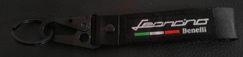 BENELLI LEONCINO motoros kulcstartó karabineres hímzett pánttal PRÉMIUM BENELLI LEONCINO motoros kulcstartó karabineres hímzett pánttal PRÉMIUM Erős szövet anyagú kulcstartó BENELLI LEONCINO mintával. A minta nem vasalt, hanem bele van hímezve. A kulcstartó tökéletes ajándék minden motorosnak. Nem nehéz így menet közben sem zavaró ha fent van a kulcsok mellett. Minta van min