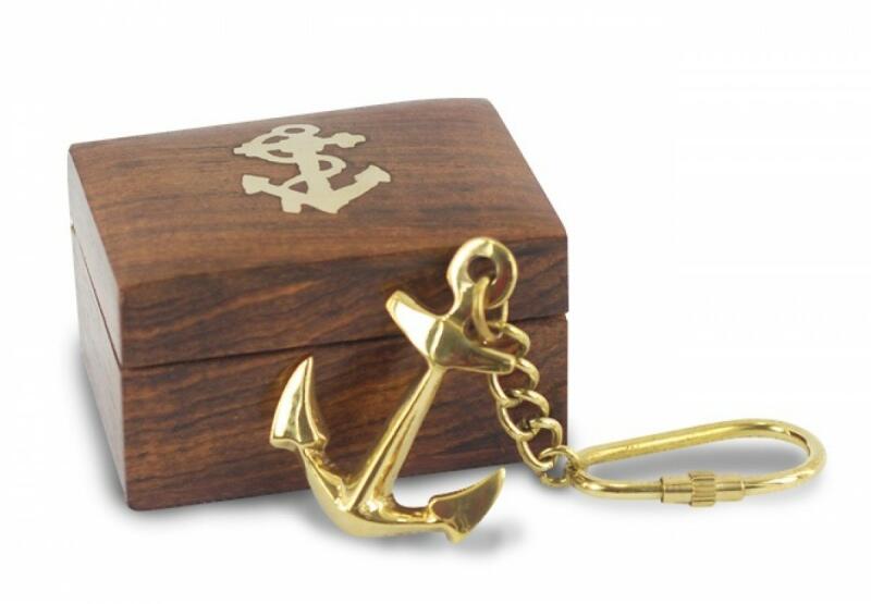 Kulcstartó horgony rózsafa díszdobozban MÉRETE: 4,5 × 3,5 cm, 7,5 × 9,5 × 4,5 cm doboz ANYAGA: réz, rózsafa CSOMAGOLÁS: kartondoboz Képzelje el, hogy minden reggel, amikor kilép az ajtón, egy elegáns, sárgaréz horgony formájú kulcstartó ad otthont kulcsainak. Ez a különleges darab, melyet gravírozható rózsafa dobozban kínálunk, nem csak praktikus tárgy, hanem a vitorláz