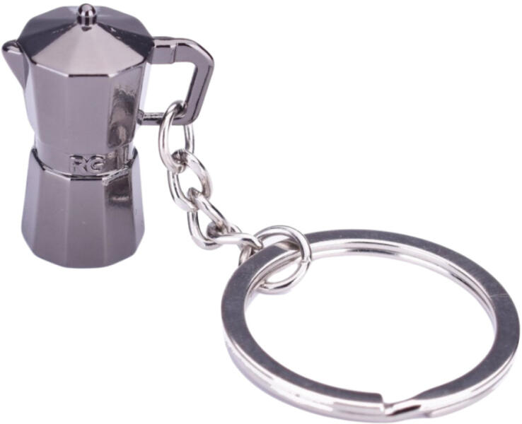 Kotyogós barista fém kulcstartó fekete színben. Praktikus kiegészítő vagy ajándék a kávé szerelmesei számára.