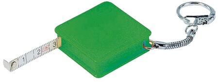 1 m-es acél mérőszalag, műanyag kulcstartóval, vidám színekben, jól emblémázható felülettel, melyhez tamponnyomást javaslunk.
