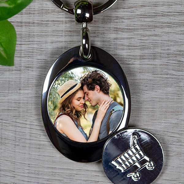 Fényképes fém kulcsatrtó bevásárlókocsi érmével Egyedi fényképes kulcstartó, hátoldalán egy mágnessel, amely a bevásárlókocsi érmét a a kulcstartóhoz rögzíti. Hasznos és praktikus ajándék a mindennapokra. Ha ezt a kulcstartót választja, akkor nincs több sorbanállás a pénztárnál pénzváltás miatt és nincs több aprópénz utáni keresgélés a táskában. A kulc