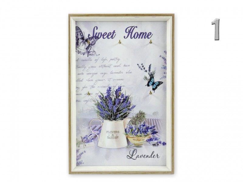 Fali Kulcstartó levendulás 19x29cm 4féle 04903 Ez a fali kulcstartó ideális bárki számára, aki rendszerezni szeretné otthonában a kulcsait, és közben egy dekoratív elemmel is gazdagítani kívánja lakását. Különösen ajánlott családoknak, akiknek több kulcsuk van, vagy azoknak, akik gyakran keresik a kulcsaikat. A "Fali kulcstartó levendulás 19x29cm 4féle" egy praktikus és