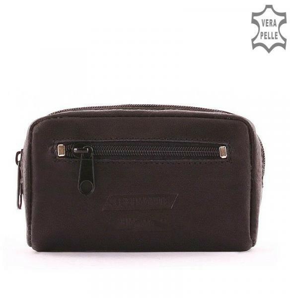 bőr kicsi kulcstartó elején cipzáras zseb cipzáras fő rekesz belül fém láncon, két kulcskarika Szé:10 x Ma:8 cm