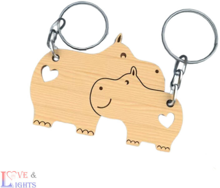 Aranyos páros kulcstar fából - víziló alakú, egyedi gravírozással Napjainkban egyre népszerűbbek az egyedi ajándéktárgyak. Melyek jelképezik, hogy fontos nekünk az ajándékozott, így egy olyan tárggyal szeretnénk meglepni ami különleges. Éppen ezért kitűnő választás egy személyre szóló, gravírozott páros kulcstartó, melyen a Ti nevetek szerepel :) A kulcstartó mé