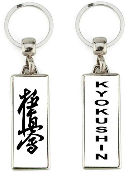 Magas minőségű fém kulcstartó, mindkét oldalán Kyokushin felirattal - egyik oldalán japán szimbólummal Mérete kb. 5*2 cm