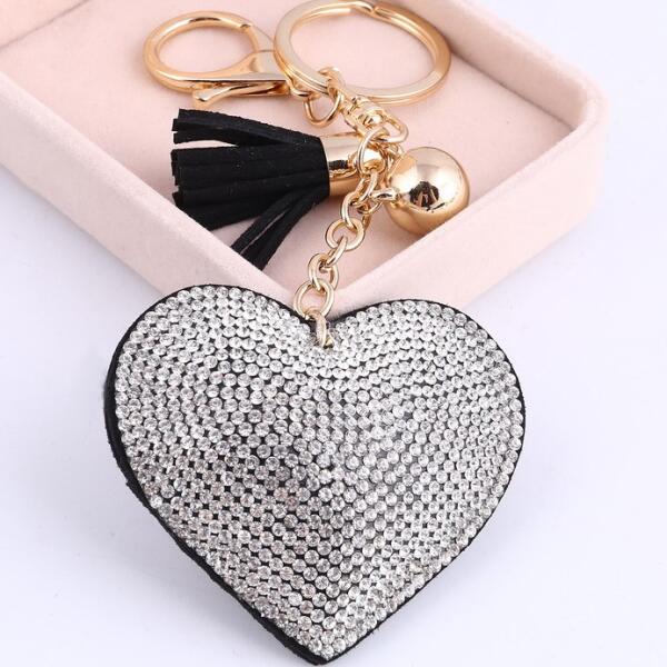 virág formájú kulcstartó virág alakú fém kulcstartócsillogó műanyag dísszelrövid lánccalacél kulcskarikával