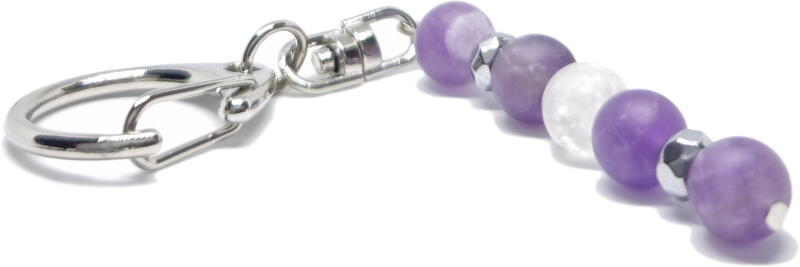 Kiváló minőségű valódi ametiszt matt ásványból készült ásvány kulcstartó. Az ametiszt finom lila árnyalatával harmóniát és nyugalmat sugároz, miközben az ásványt hagyományosan a tisztánlátás és belső egyensúly jelképeként viselik. A kulcstartó valódi ametiszt matt, roppantott hegyikristály matt 8-9 mm ásványból és hematit dísszel készült. Az ásvány, kulc