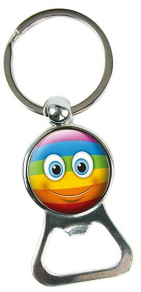 szivárványos sörnyitó Emojis fém kulcstartó sörnyitóvalszivárvány arcos mintaacél kulcskarikával