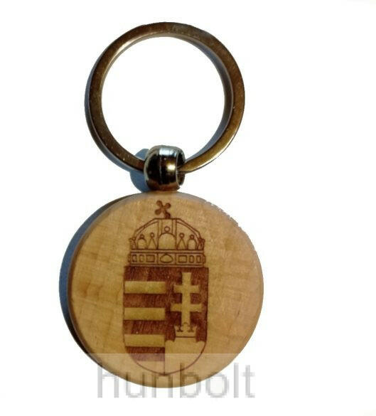 Bükkfából készült címeres fa kulcstartó Átmérő: 40 mm