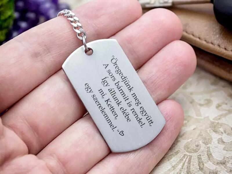 Ez az egyedi dizájn csak nálunk kapható. A legjobb gesztus és ajándékötlet! Válaszd ki a listából a formátumot és a kívánt színt. Alapesetben rozsdamentes alumíniumot küldünk, de rendelhető tükörpolírozott nemesacél kivitel is. Választható (grafikától függően) dögcédula, kör és szív forma is. Ha nem látod a választólistát, rendeléskor a MEGJEGYZÉSBE írd be,
