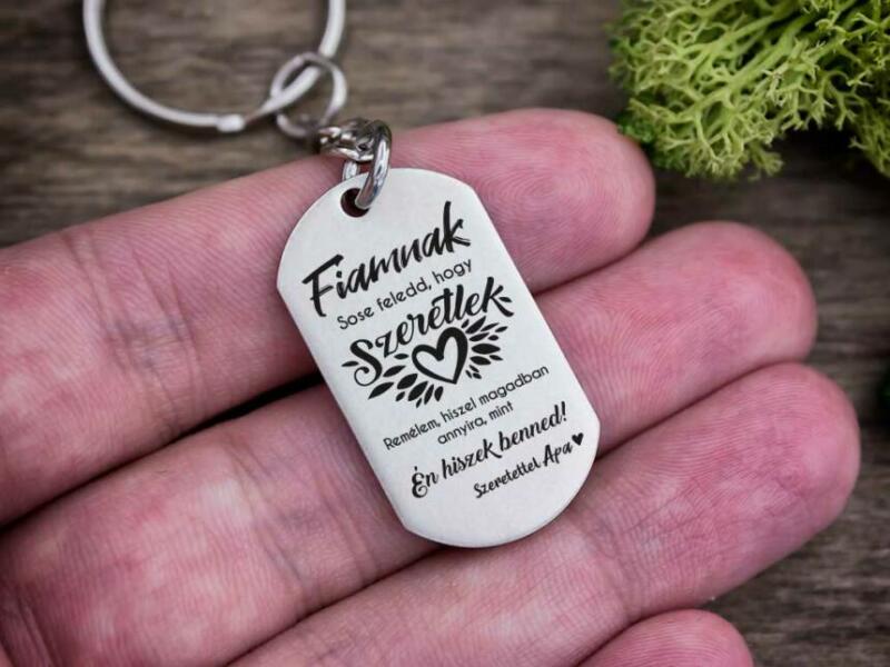 " Fiamnak. Sose feledd, hogy szeretlek. Remélem, hiszel magadban annyira, mint Én hiszek benned! Szeretettel Apa " feliratos acél téglalap medálos kulcstartó Számotokra állítottunk össze egy kedves meglepetést! Univerzális ajándék ez a kulcstartó, melynek szerettünk biztosan örülni fog. Fontosnak lenni valakinek óriási energiát adhat. Sokszor ugyan nehéz ezt kimondani. Meglep
