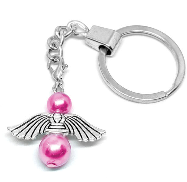 Őrangyal kulcstartó. Paraméterek: Medál mérete: kb. 4x3 cm. Medál anyaga fémötvözet és mesterséges gyöngy. Kulcstartó karika típus eltérhet a képen láthatótól, készlet szerint küldjük. Ékszeralapok anyaga: rozsdamentes acél.