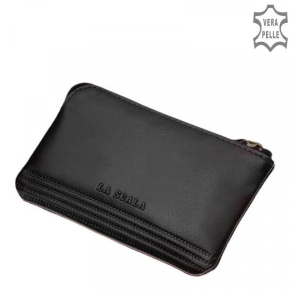 bőr kicsi kulcstartó cipzáras fő rekesz hátulján cipzáras zseb belül fém láncon, két kulcskarika Szé:12,5 x Ma:8 cm