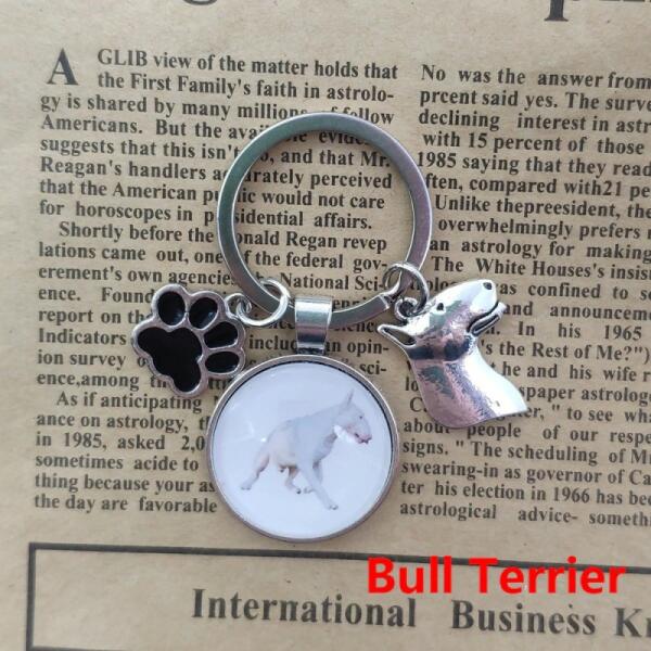 Fém kutyás kulcstartó - Bullterrier Kerek kép átmérője: 2,7cm Jó ajándék ötlet születésnapra, Karácsonyra és egyéb alkalmakra.