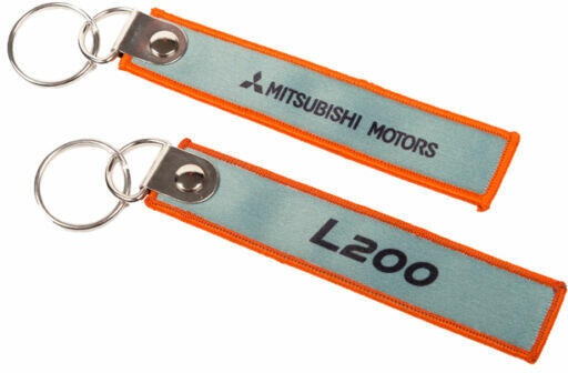 MITSUBISHI KULCSTARTÓ, A GYÁR ÁLTAL FORGALMAZOTT TERMÉK. Kiváló minőségű Mitsubishi L200 kulcstartó. Mitsubishi emblémával és "MITSUBISHI MOTORS" felirattal van ellátva az egyik fele. A másik "L200" felirattal van díszítve. Anyaga : 100% poliészter Mérete : 150 X 20 mm Kerek karikára a kulcsok felhelyezése egyszerű és biztonságos. Kellemes tapintású, lapos tulajdonságán
