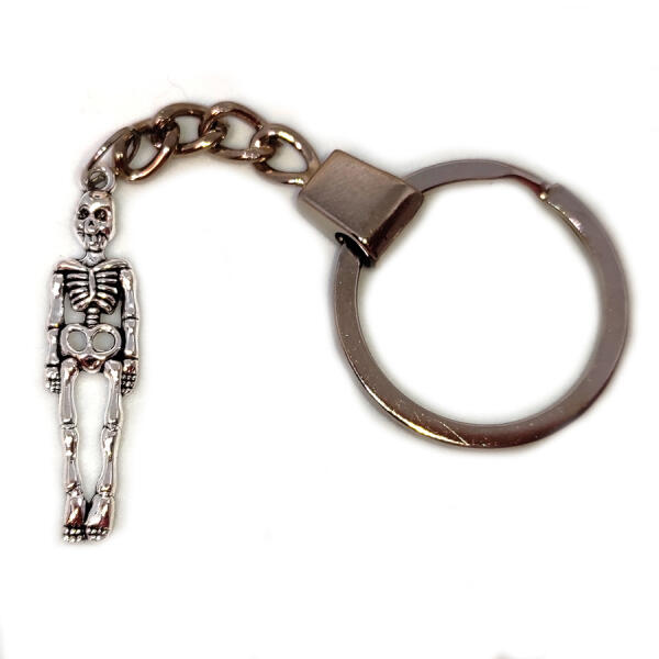 Csontváz kulcstartó. Paraméterek: Medál mérete 4x1 cm. Anyaga fémötvözet. Kulcstartó karika típus eltérhet a képen láthatótól, készlet szerint küldjük. Ékszeralapok anyaga: rozsdamentes acél.