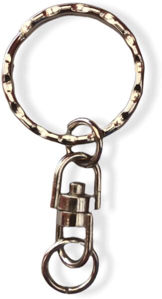 Átmérő 25mm-es hullámosított kulcskarikával és átmérő 10mm-es végszemmel rendelkező, nikkelezett minőségi termék. Teljes hossz: 52mm. *Kulcstartó lánc*