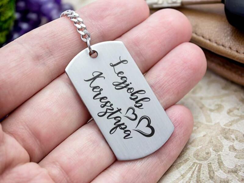 " Legjobb Keresztapa " feliratos acél téglalap medálos kulcstartó A számotokra állítottunk össze egy kedves meglepetést! A „második apuka, aki nem csak a hasznos dolgokat, de a csíntalanságot is tanítja majd. Akivel jókat mókázhatsz játék közben, családi összejöveteleken. . Kiváló ajándék lehet keresztelőre, vagy bármikor, amikor elmondanád, fontos neked. Ezt a nagys