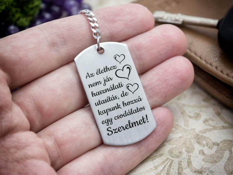 " Az élethez nem jár használati utasítás, de kapunk hozzá egy csodálatos Szerelmet! " feliratos acél medálos kulcstartó Számotokra állítottunk össze egy kedves meglepetést! Ez a kulcstartó kedves ajándék egy számodra fontos embernek. "Az élethez türelem kell"- írta Márai Sándor, akinek szavait érdemes megfontolnunk. Ma, amikor mindenki rohan, egyik feladatból esik a mási