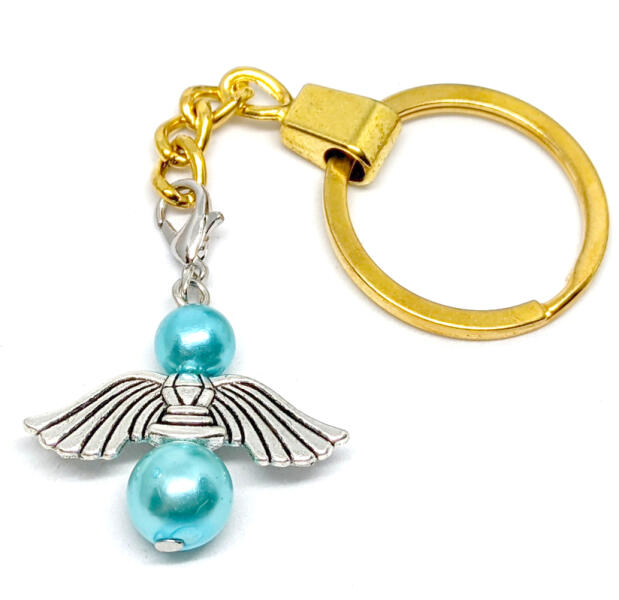 Őrangyal kulcstartó. Paraméterek: Medál mérete: kb. 4x3 cm. Medál anyaga fémötvözet és mesterséges gyöngy. Kulcstartó karika típus eltérhet a képen láthatótól, készlet szerint küldjük. Ékszeralapok anyaga: rozsdamentes acél.