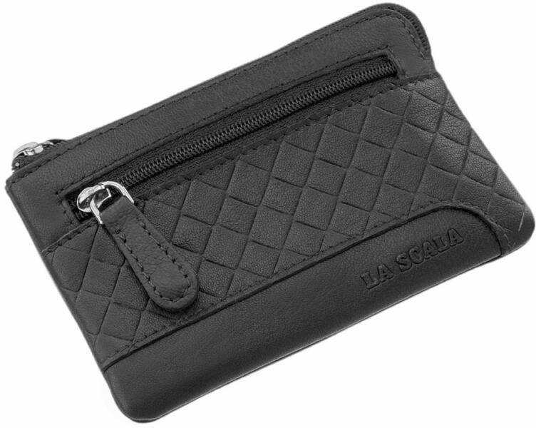 bőr kicsi kulcstartó cipzáras fő rekesz elől cipzáras zseb belül fém láncon egy kulcskarika Szé:12 cm x Ma:8 cm