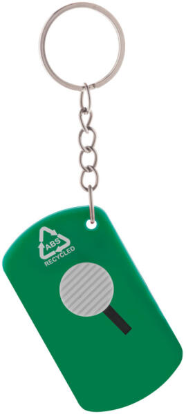 Újrahasznosított ABS műanyagból és rozsdamentes acélból készült papírkés önbehúzódó pengével és fém kulcstartóval.