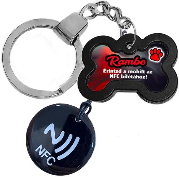 A digitális bilétára felprogramozzuk a kutya gazdájának telefonszámát, a kutya nevét és akár a címet is. (Ezeket az adatokat írd be a megjegyzésbe!) A kör alakú digitális bilétához érintve bármilyen okostelefont, a mobilon megjelennek a kutya adatai (telefonszám, név, cím, de ezek helyett akár egy linket – youtube vagy drive vagy bármilyen linket – is fel tudunk progra