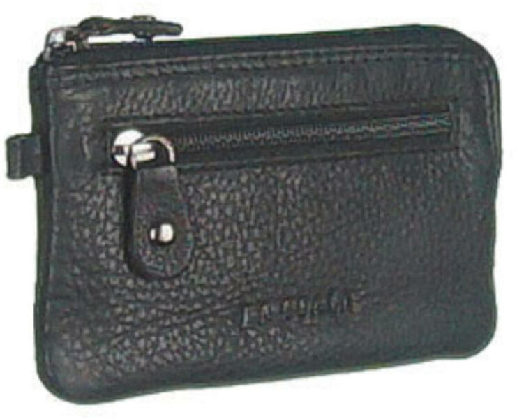 Puha fekete bőrből készült 2 részes kulcstartó. Kulcstartó része cipzárral zárható, amelyben egy fém lánccal rögzített kulcskarika található. Elején egy 4,5 cm magas cipzáros lapos zseb helyezkedik el. Az egyik végén van egy kis bőr fül amire szükség esetén mér egy kulcskarikát vagy karabinert lehet tenni.