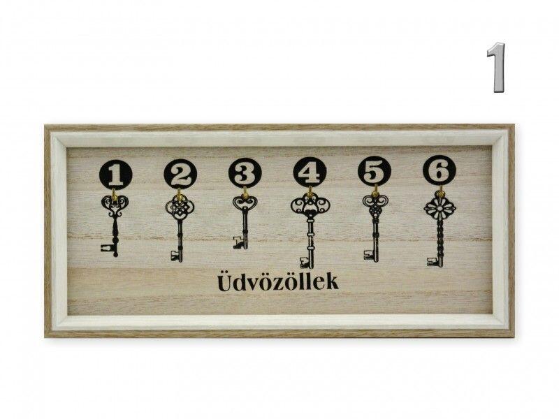 Fali kulcstartó 30x13cm 4féle 04899 Ez a fali kulcstartó ideális bárki számára, aki rendszerezni szeretné otthonában a kulcsait, és közben egy dekoratív elemmel is gazdagítani kívánja lakását. Különösen ajánlott családoknak, akiknek több kulcsuk van, vagy azoknak, akik gyakran keresik a kulcsaikat. A "Fali kulcstartó 30x13cm 4féle" egy praktikus és stílusos kiegészítő