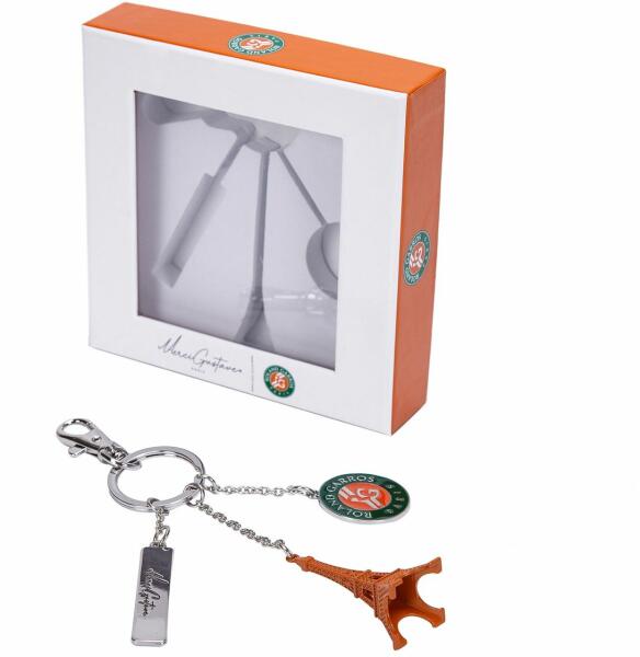 A Roland Garros fém Eiffel-torony - exkluzív árucikk Az elemek hármasa Ez az egyedülálló bizsu magában rejti az elemek hármasságát. A világhírű francia nyílt bajnoksággal való kapcsolatáról árulkodik, hogy a Roland Garros jellegzetes logóját viseli. Ehhez járul az Eiffel-torony miniatűr megjelenítése, amelyet nem kell bemutatni. A kulcstartó büszkén viseli a Merci Gust