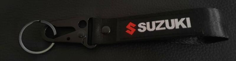 Suzuki GSX R motoros kulcstartó karabineres hímzett pánttal PRÉMIUM Suzuki GSX R motoros kulcstartó karabineres hímzett pánttal PRÉMIUM Erős szövet anyagú kulcstartó Suzuki GSX R mintával. A minta nem vasalt, hanem bele van hímezve. A kulcstartó tökéletes ajándék minden motorosnak. Nem nehéz így menet közben sem zavaró ha fent van a kulcsok mellett. Minta van mindkét oldal