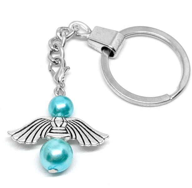 Őrangyal kulcstartó. Paraméterek: Medál mérete: kb. 4x3 cm. Medál anyaga fémötvözet és mesterséges gyöngy. Kulcstartó karika típus eltérhet a képen láthatótól, készlet szerint küldjük. Ékszeralapok anyaga: rozsdamentes acél.