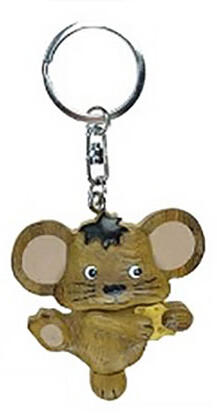 Fa kulcstartó egér sajttal a kezében 5cm.