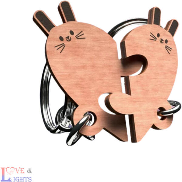 Aranyos páros kulcstar fából - nyuszi alakú, egyedi gravírozással Napjainkban egyre népszerűbbek az egyedi ajándéktárgyak. Melyek jelképezik, hogy fontos nekünk az ajándékozott, így egy olyan tárggyal szeretnénk meglepni ami különleges. Éppen ezért kitűnő választás egy személyre szóló, gravírozott páros kulcstartó, melyen a Ti nevetek szerepel :) A kulcstartó mére