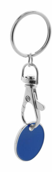 Fém bevásárlókocsi érme karabinerrel és kulcskarikával, melynek egyik oldala színes, másik oldalán pedig bevásárlókocsi logó található. Érme mérete: ø23×1,7 mm.