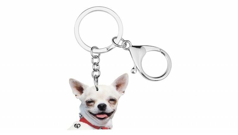 Akril-fém kutyás kulcstartó - Csivava (Chihuahua) Méret: 3,0cm x 3,5cm Súly: 13,4g