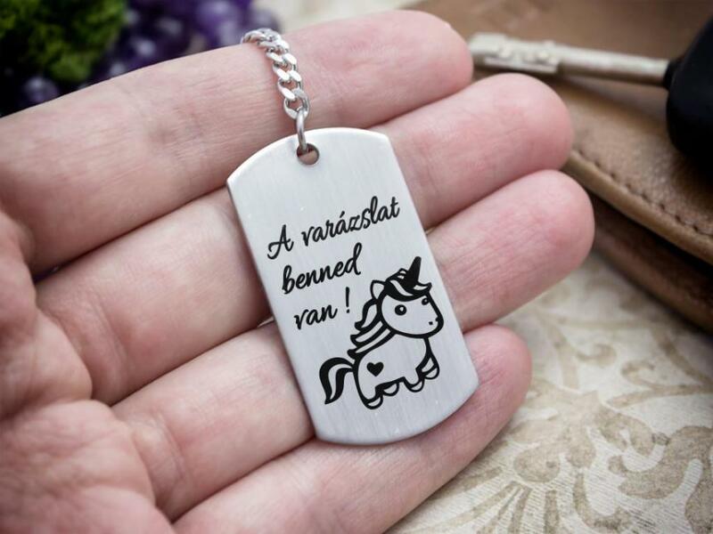 " A varázslat benned van. " feliratos acél téglalap medálos kulcstartó A számotokra állítottunk össze egy kedves meglepetést!Az unikornis, vagyis egyszarvú misztikus állat, alakja az antik világig visszavezethető. Olyan tulajdonságokkal ruházták fel, mint az ártatlanság, tisztaság, jóindulat. Napjainkban a divatipar és a mesék ismét ismertté tették az unikornisokat, sok r