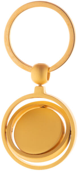Fém kulcstartó arany kivitelben, forgatható belső résszel. Kraft papír dobozban.