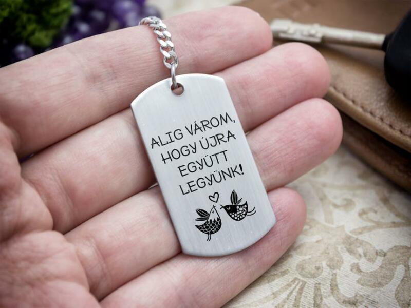 " Alig várom, hogy újra együtt legyünk! " feliratos acél téglalap medálos kulcstartó Sokszor pár óra, néhány nap is soknak tűnik, amit a párod nélkül kell töltened. Akik pedig távol laknak egymástól, azoknak még égetőbb a szerettük hiánya. Lepd meg ezzel a kulcstartóval, hogy minden nap, amikor a kezébe veszi a kulcscsomót, emlékezzen rá, hiányzik és hazavárják!Ez