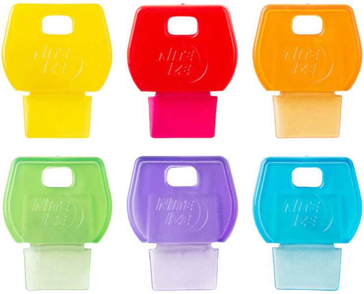 Univerzális kulcsazonosító borítók írható fülekkel, amelyek könnyen azonosíthatóvá teszik a kulcsokat. A borítók anyaga rugalmas, tartós gumi, amely a legtöbb alakú és méretű kulcshoz illeszkedik, és szorosan a helyén marad, miközben védi a belülre írt feliratot. 6 db-os kiszerelés.