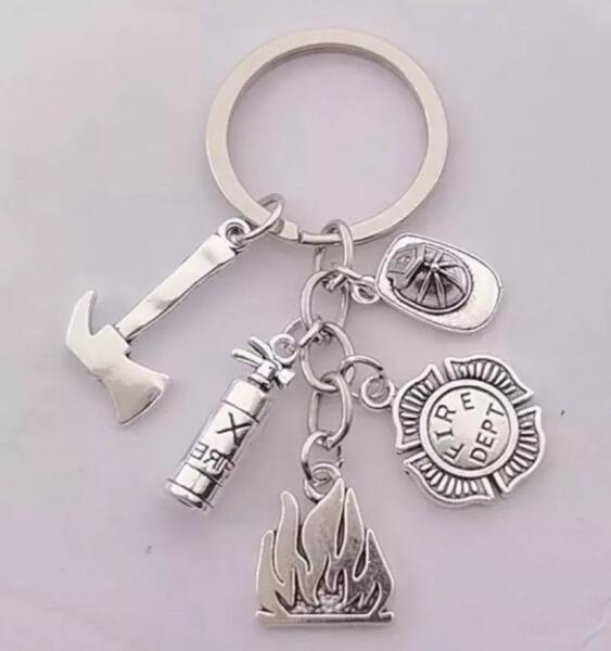 Ez a tűzoltó tematikájú kulcstartó tökéletes választás mindenki számára, aki tiszteletét szeretné kifejezni a tűzoltók hősies munkája iránt, vagy egyszerűen csak kedveli a különleges és stílusos kiegészítőket. Tűzoltó kulcstartó A kulcstartón öt különféle fém függő található, amelyek mindegyike a tűzoltó hivatás fontos szimbóluma: egy balta, egy tűzoltó
