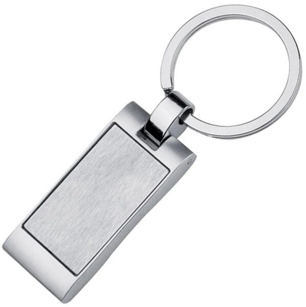 Termék jellemzői: Divatos formatervezésű téglalap alakú kulcstartó, ezüstszínű kivitelben. Első oldalán matt függőlegesen szálcsiszolt betéttel, hátsó oldala enyhén hullámos. Körvonalasan gravírozható. Fekete kartondobozba csomagolva szállítjuk. Gravírozási technika : Körvonalas (mechanikus) Mérete karikával együtt: 8,5 cm