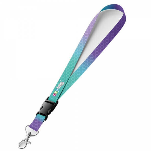 Ombre kulcstartó, nyakba akasztós, 46x2cm, lila-türkiz