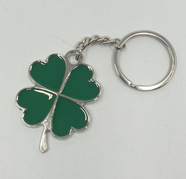 Négylevelű lóhere formájú kulcstartó. Négylevelű lóhere formájú, szerencsehozó kulcstartó, fekete díszdobozban. Anyaga: fém Mérete: kb. : 5,5 x 4 cm