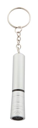 Műanyag, mini elemlámpa fehér LED fénnyel, fém véggel és kulcskarikával. Gombelemmel szállítjuk. Feliratozását, emblémázását vállaljuk.